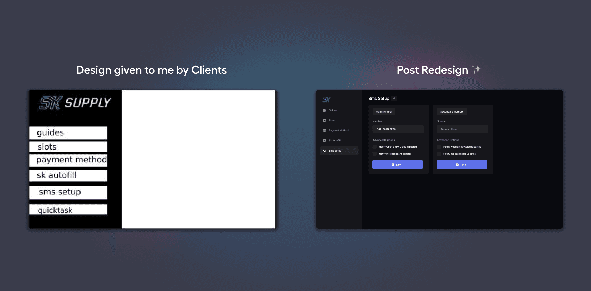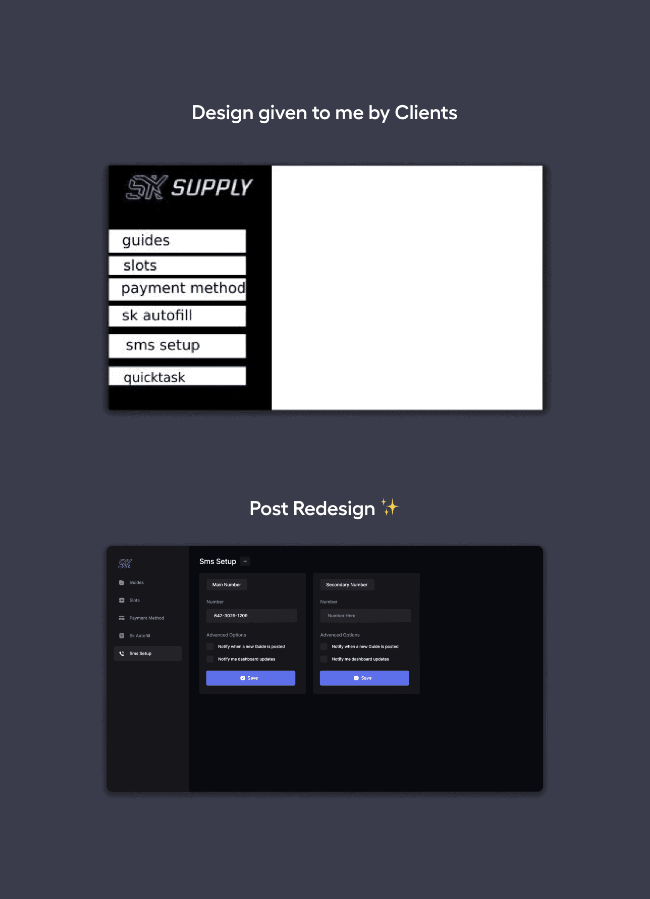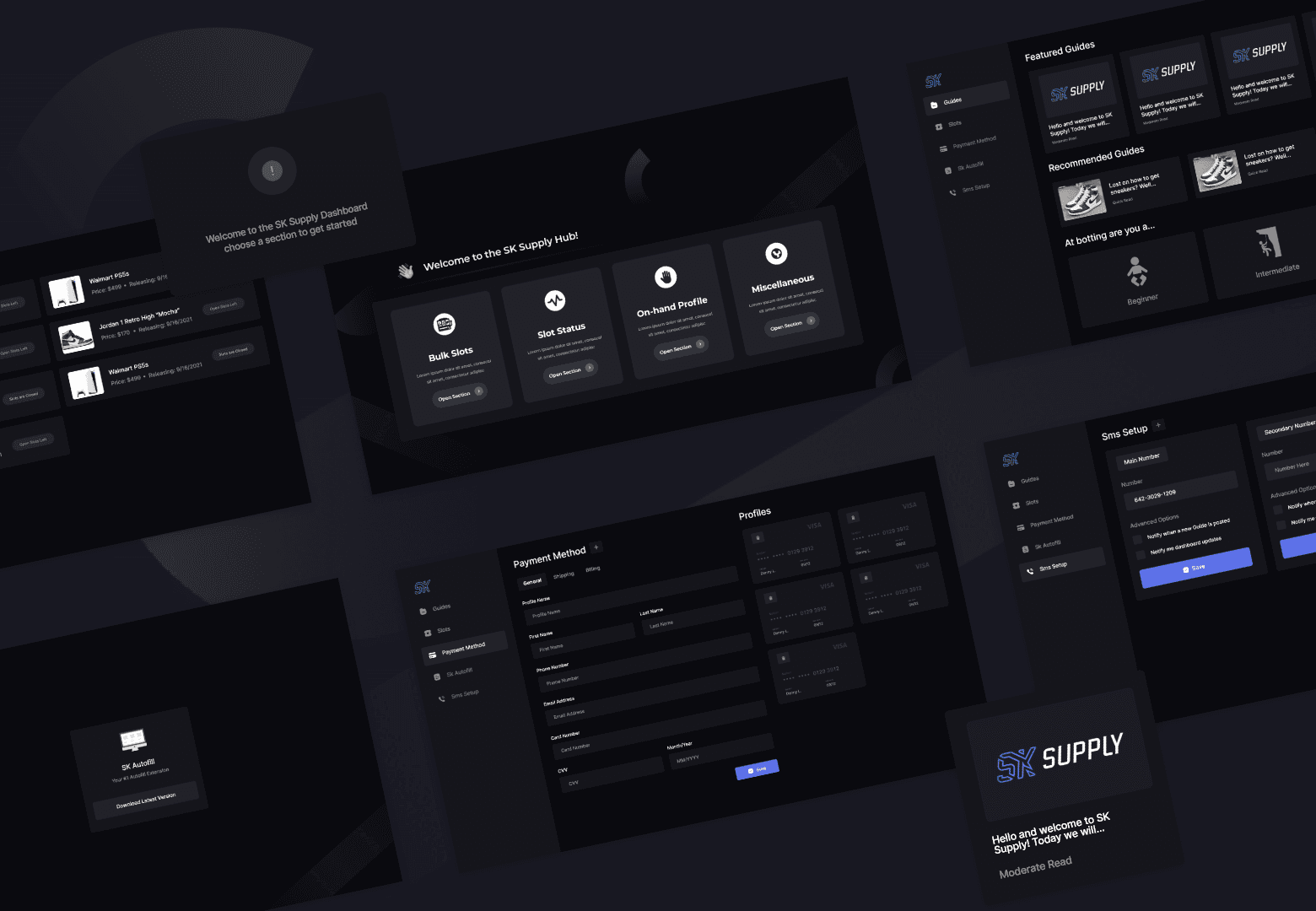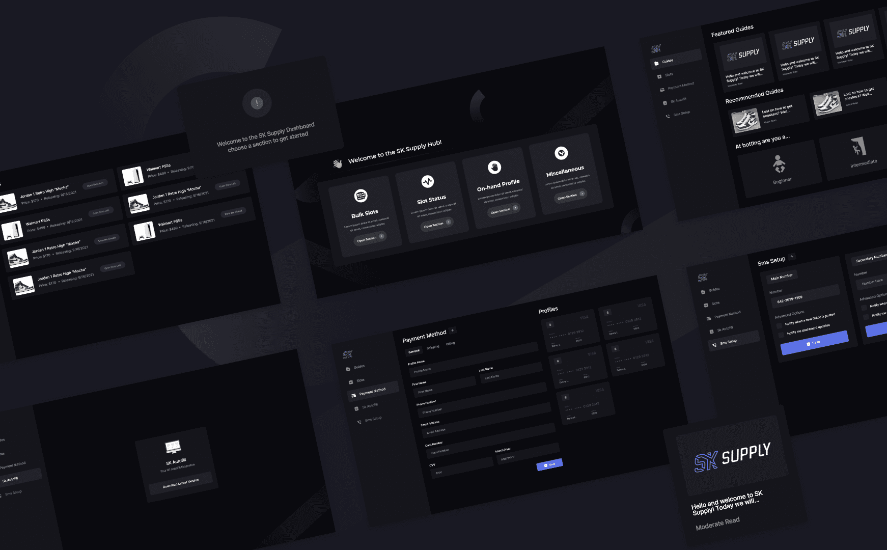 After successfully working together on Reign AIO, the popular sneaker reseller, Tiana Porta asked me to design a dashboard for her Discord group Sk Supply. I finished the project much earlier than expected, and the project was a great success.